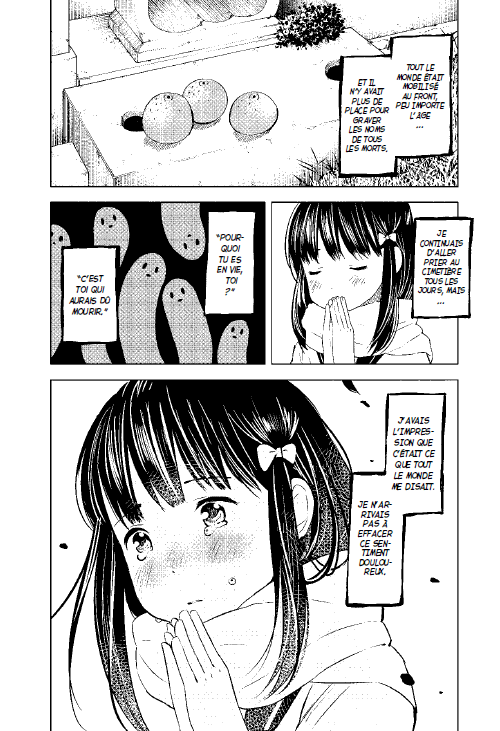 L’hiver est tombé sur la petite île d’Aoshima, glaçant les paysages, mais surtout le coeur de Saku, Miyako et Shinokawa, devant subir quotidiennement l’annonce de la perte d’un de leurs camarades. Et tandis que le nombre d’élève diminue inexorablement, les derniers adultes présents sont également appelés sur le front. La fin de la guerre semble proche mais… quelle sera sa conclusion ?
