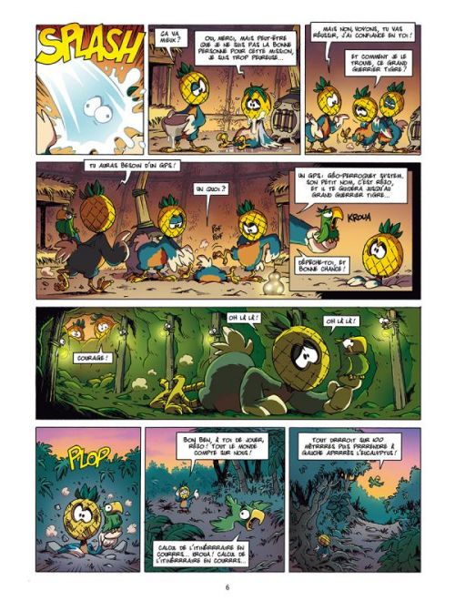 Bien que cela soit une bande dessinée pour les enfants, on peut être rassuré que l’histoire va être du costaud. Davy Mourier est au commande des mots et de l’histoire, donc il livre un travail préparé aux petits oignons. Ainsi il use avec beaucoup d’ingéniosité et de brio de faire des blagues à double sens, de faire des clins d’oeil à des références que les moins de 20 ans ne peuvent pas connaître. Une maîtrise de l’écriture et une bonne culture générale est indispensable pour se plier à ce jeu d’esprit. Ainsi que l’on soit un mineur ou un adulte, cela reste très plaisant et amusant à lire. On ne rit pas forcément des même choses et ce n’est nullement important. Si on a déjà lu « La petite mort », on sait le régal qui nous attend. Bien entendu, ici l’humour noir n’a pas trop sa place. Ceux qui ont déjà vu la série à la télévision seront ravie de retrouver la fine équipe improbable composée d’un pingouin jaune, d’un gorille, d’un poisson dans un bocal, une chauve souris et d’autres compagnons. Une alliance des plus invraisemblable et très complémentaire. Après tout, n’est pas l’union et l’humour qui font la force? Ensemble, ils vont libérer des dodos qui doivent cacher leur tête sous un ananas. Les dodos n’avaient pas disparu à cause des hommes. Nous voilà rassuré et il faut les sauver d’un affreux renard égocentrique. La ruse sera de mise pour le plus grand plaisir des lecteurs qui savourent les mésaventures remplis de rebondissements plus amusants les uns des autres. C’est totalement loufoque et absurde comment ne pas être sous le charme? Dav propose un dessin classique qui ne déroutera pas les habitudes des jeunes lecteurs et Esteban utilise que des couleurs dynamiques et vives. La bande dessinée propose une apparence assez standard pour cueillir l’attention avec des actions rocambolesques. En plus, nous avons le droit à un très sympathique happy end. Que demandez de plus?