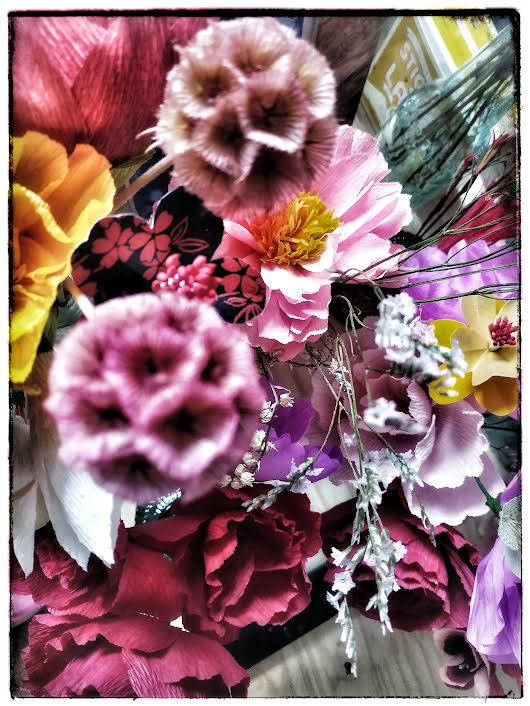 La vue de chez moi donne directement sur la route et trois pauvres arbres qui occupent l’espace. Alors je propose une photo de fleurs de chez moi, comme si la nature était à l’intérieur et pour toute l’année.
