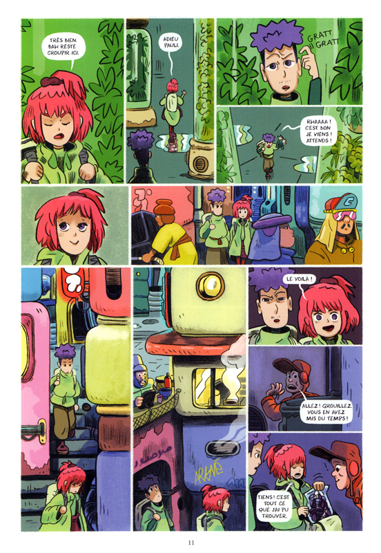 Mélanie Allag propose un court récit autour du merveilleux qui n’est pas sans rappeler une influence des studios Ghibli. On se laisse porter par ces enfants vivants dans le sol et ces insectes. La cohabitation entre les deux ne semblent pas vraiment possible. Est-ce si différent dans la réalité? Combien d’espèces disparaissent dans une sorte d’indifférence totale? En effet, c’est plus difficile d’imaginer une histoire larmoyante d’une chose presque invisible contrairement à un ours blanc ou un panda. Nous sommes à la hauteur des insectes qui nous paraissent gigantesques. Le changement d’échelle modifie le regard, plus intégré. Deux enfants s’enfuient et en rencontrent deux autres qui ont choisi une autre voie. Il est possible d’agir autrement, plus collaboratif et moins violent. On se laisse porter dans le récit. Pourtant, on aurait voulu plus de rebondissement, plus de densité. Le format court imposé par l’éditeur force alors d’aller rapidement à l’essentiel. On aurait aimer rester avec ces personnages attachants surtout en allant plus loin dans leur aspect psychologique. Sans omettre aussi un aspect écologique où l’on parle de la destruction d’espèce au profit de l’homme. L’être humain prêt à tout pour confirmer sa supériorité. Et s’il avait tort? Chacun choisira son argumentation. En tout cas, cette petite pause de lecture est agréable que l’on aurait bien poursuivi plus longtemps.