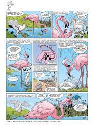 Aux éditions Bamboo, on trouve une foultitude de séries en tout genre sur les gendarmes, les pompiers, les profs, les coureurs… Et ils ont aussi des séries consacrées à des animaux avec les dinosaures, les insectes, les poissons… Là ce qui va nous intéresser se sont les oiseaux. Rassurez-vous l’éditeur a choisi un scénariste qui a déjà l’habitude de faire des albums grand public avec un gag par page. Il est déjà rôdé avec d’autres de ces séries. La particularité ici repose sur le partenariat avec la ligue de protection des oiseaux. Chaque page est consacrée à volatile qui peut être présent partout dans le monde. Bien entendu, il n’a pas choisi une approche très pragmatique et pompeuse. Avec beaucoup d’ingéniosité, il trouve le juste milieu entre information réelle et l’aspect humoristique. Rire en apprenant est le plus difficile à faire. La plupart des gags se complète par un petit encart informatif. On connaît le nom de l’oiseau, sa taille, une de ces particularités et où on le trouve. Cette façon de faire permet d’attirer tous les lecteurs qu’importe son âge ou son diplôme. Ainsi on peut acheter la bd et la faire tourner dans la famille. En plus, à la fin, on a le droit à un dossier pédagogique explicatif, accessible et très compréhensif. On a envie de lire la suite car c’est distrayant et instructif. On regarde autrement les oiseaux qui sont mieux en liberté qu’en cage.