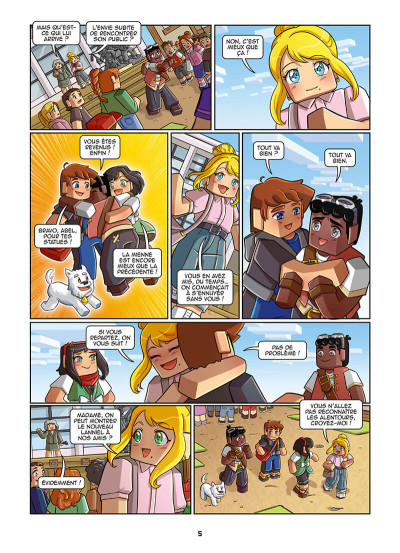 Les quatre amis de Lanniel n’ont jamais le temps de s’ennuyer. Jean-Christophe Derrien et Frigiel leur ont concocté une aventure haute en couleurs et en référence à la culture populaire. D’ailleurs, cette fois ils commencent dès le titre avec « 20 000 cubes sous la Terre » en clin d’oeil à « 20 000 lieues sous les mers » et « Voyage au centre de la Terre » de Jules Verne. Une double combinaison de romans fantastiques du 19e siècle pour faire rêver les curieux. Youtube est d’une certaine façon les feuilletons papiers de l’époque. Tout comme le monde de Minecraft et l’ensemble des produits dérivés comme cette adaptation du roman. Une autre allusion parlera plus à des générations plus jeunes avec « Retour vers le futur » bien que le film soit sorti en 1985. Ces éléments donnent une autre dimension à la lecture comme si on voulait toucher un public plus large. Toutefois, le rythme est assez rapide pour ne jamais s’essouffler. Pas trop de le temps pour installer le retour des héros et même constat pour la fin. Arianna Sabella s’affirme dans la partie graphique en arrondissant plus les angles, en s’inspirant des mangas et dans des teintes vives. Un ouvrage cohérent et amusant qui devrait ravir les fans.