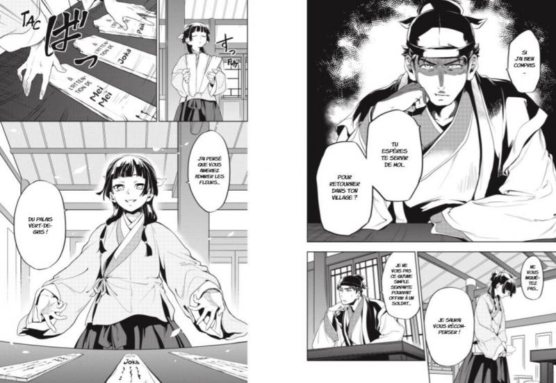 Quelle vérité se cache derrière cette étrange manigance ? Découvrez la face cachée du lieu le plus secret de la cité impériale ! Dans ce monde de femmes régi par les hommes, Mao Mao aura besoin de toute son intelligence et de tout son savoir pour démêler les intrigues de la cour… Avec son héroïne hors norme et ses décors magnifiques, ce manga événement adapté d’un roman à succès a tout pour plaire ! Et vous, aurez-vous le courage de goûter à ses délices ?