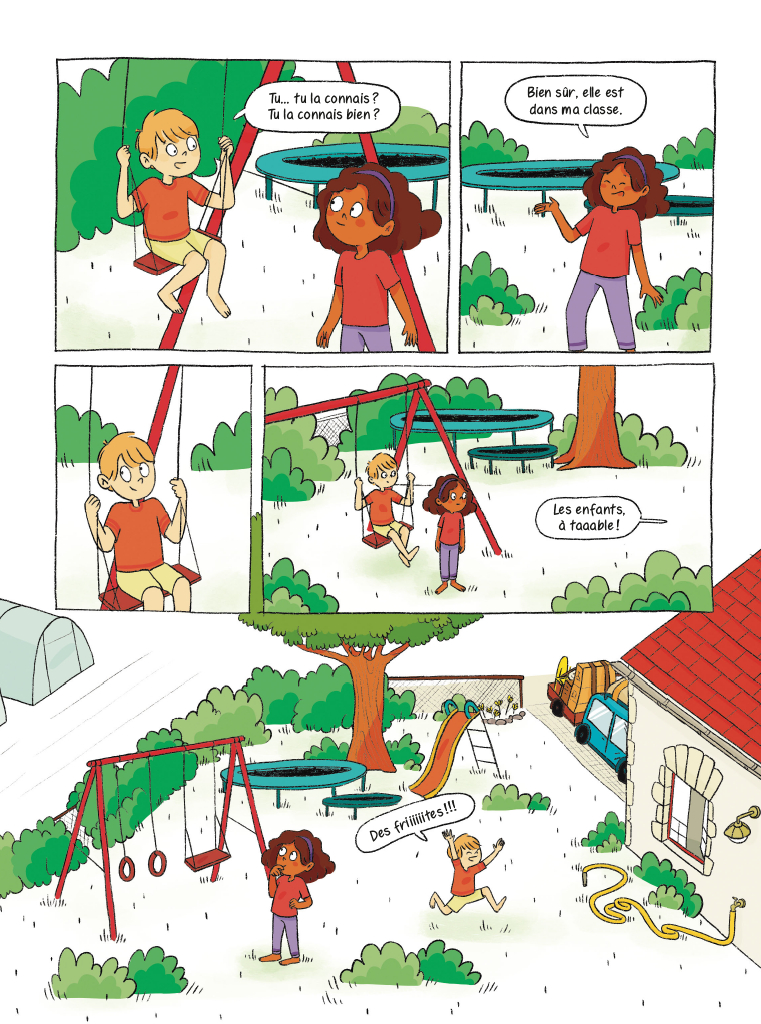 Comment expliquer aux enfants que les légumes peuvent pousser dans le jardin? Et en plus, ils ont un goût meilleur que de nombreux produits industriels. Casterman propose une collection de bd avec des enfants qui sont acteurs dans un domaine que cela soit la cuisine, la pâtisserie et bien entendu le potager. Mathilde Ruau Stento va raconter à travers trois personnages, le plaisir de planter et de récolter le fruit de leur travail. Déjà, elle choisit de montrer un angle original avec une famille reconstituée et symbolique de la diversité. Ce n’est pas parce que l’on n’a pas les même parents, la même couleur et les mêmes origines que l’on ne peut construire des choses ensemble. Simon au début ne voulait pas laisser de place à Lila dans le jardin car c’est chez lui. Grâce à la jolie voisine, le garçon veut bien faire des efforts. A partir de là, débute l’aventure en plantant des graines, en réutilisant des mauvaises herbes, protéger les pieds du froid et du chaud.. La satisfaction est là car ils se régalent aussi bien de fraises que de haricots. La scénariste aborde toutes les saisons pour montrer que l’on agir tout le temps. Le graphisme est mignon avec des formes rondes, des couleurs festives qui donnent une impression de joie, de facilité et de beauté. Par contre, c’est étonnant de voir que l’on plante n’importe où n’importe quand dans un jardin avec du gazon. Et il y a un aspect un peu trompeur car on laisse croire que l’on jette une graine et qu’elle pousse presque aussitôt. La notion de temps est nullement présente. Et aussi que la culture ne s’organise pas du tout. En effet, est évoqué escargot et limasse qui ont tendance à dévorer des créations et autres petits animaux. Les solutions? Espérer avoir des prédateurs naturels. Néanmoins, avoir des hérissons c’est plutôt pratique. Toutefois, on ne va pas acheter un hérisson dans une animalerie et il est libre d’aller où il veut. D’autant plus, que sa présence se raréfie comme celle des chouettes, hiboux… On va dire que le message positif prime sur la vraisemblance des faits. On espère que des jeunes lecteurs seront curieux d’essayer le jardinage et réfléchir d’où viennent ce qu’il mange.