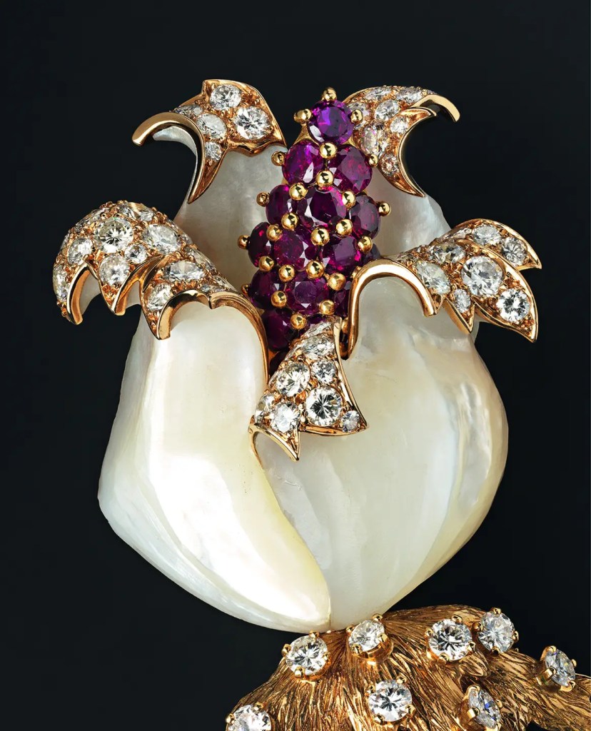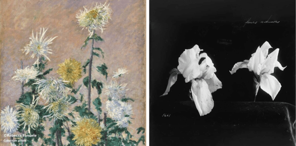 Le commissaire de l’exposition, Marc Jeanson, directeur de la botanique du jardin Majorelle à Marrakech, a choisi une centaine d’objets dans la collection Chaumet, du musée Victoria & Albert Museum de Londres, le Royal Botanic Garden de Kew, le Kunstalle de Hambourg… Ainsi des sublimes bijoux de Chaumet, Majorelle côtoient « Iris » de Claude Monet, des pivoines de Robert Mapplethorpe et même une robe brodée de muguet de Christian Dior.