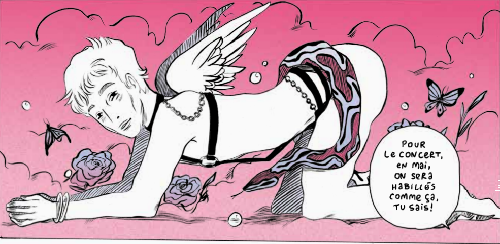 Comment se faire aimer? Pour cela, ne faut-il pas correspondre à canon de la mode? Julia Reynaud propose une histoire qui donne une réponse claire et net. Noah ressemble un peu à monsieur tout le monde. Il doit faire des études pour trouver un vrai travail plus tard. Mais la musique c’est beaucoup plus plaisant et facile aussi. Toutefois, cela ne fait pas rentrer d’argent. Il compte sur les parents pour pourvoir à ces rêves et ces loisirs. Et quand il est à sec, son père fait le nécessaire. Donc il n’a pas à s’inquiéter de ce côté là. Il vient à se demander comment se faire aimer? Est-ce que cela doit reposer sur la personnalité, son attitude, ses passions? Est-ce suffisant? Le personnage principal sent que pour garder celle dont il est tombé amoureux, il faut que son corps ressemble à son idole. Si son couple ne tient pas la route, cela ne peut être qu’en lien avec son apparence. Quoi d’autre? Donc pas le choix d’acheter des produits couteux et de modifier ces habitudes de vie. La pression au quotidien est très forte. La fiction et la réalité se croisent ici. On glorifie la minceur, la maigreur, la perfection à travers des affiches publicitaires, des séries, des films… Difficile de ne pas tomber dans une boucle de torture narcissique avec les réseaux sociaux. La scénariste propose une fin positive avec une prise de conscience. Les images peuvent mentir. Elle a choisi de transmettre un message constructif pour pousser à réfléchir à nos choix. Pour cela, le rythme est assez lent. Il correspond aussi à des prises de décisions humaines avec son lot de contradiction et de biais. C’est marqué avec des couleurs qui changent au fur et à mesure. Côté graphisme, il est net précis et va à l’essentiel. On ne s’interdit aucune représentation comme un pénis en érection par exemple. Les images deviennent plus chargées pour souligner l’a monter l’omniprésence des impératifs commerciaux présents partout. Soit conforme et consomme. Le bonheur est dans la consommation. L’amour est dans la consommation. Une jolie critique sociale qui devrait inciter à poser un autre regard ceux qui aiment enrichir les industriels.