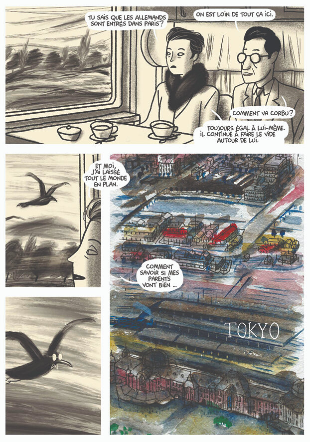 Juin 1940, à bord du Hakusan Maru, Charlotte Perriand quitte la France. Endormie dans sa cabine, elle fait un cauchemar. Le Corbusier, sous les traits d’un corbeau, lui fait des reproches : « Tu auras tout le temps de méditer le mal que tu m’as fait.»