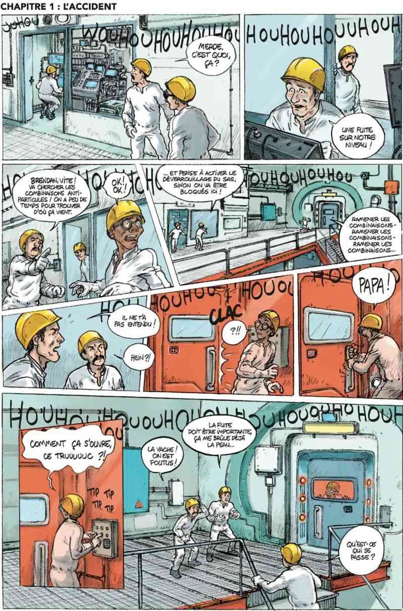Le scénariste aborde de nombreux sujets sensibles. Tout d’abord la sureté du nucléaire qui ne doit pas mettre en danger les habitants des alentours. Le récit commence avec trois morts contaminés et meurent très rapidement. Rien ne sort de la centrale. Quand le Président de la république appelle le directeur de la centrale, il veut la garantie que tout est en règle. Uniquement une réponse positive est admise. Rien de tel pour faire de l’humour noir. Le directeur confirme : « Eh bien, si on fait abstraction de l’incident de niveau 2 survenu en 1997, de l’incendie d’un transformateur électrique en 2004, du déversement d’acide chlorhydrique dans le fleuve en 2009, des quinze salariés contaminés en 2014, de l’incendie dans la salle des machines du réacteur n°2 en 2017, de la fuite ayant entraîné la mise en place d’une cellule de crise en 2018, si on met de côté le rapport en ingénierie nucléaire recommandant de fermer immédiatement la centrale en 2019, et si on écarte l’accident mortel du mois dernier… Je dirais que la centrale est sûre à 100% sans hésitation. » Puis on voit l’image du Président ravie entouré de personnes du gouvernement. L’image du référent de l’autorité ressemble à s’y méprendre à Emmanuel Macron. D’autres éléments confirment l’identité de l’homme avec les sous-entendu d’homosexualité. La rumeur court depuis plusieurs années pour donner une image négative de la personne. Il est important de surfer sur des propos homophobes. On peut se demander l’intérêt de cette référence dans le récit qui n’apporte strictement rien du tout.