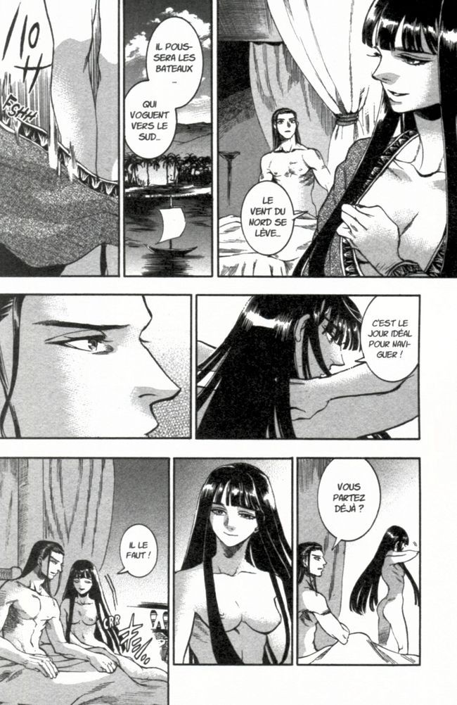 Affirmer son pouvoir quand on est une femme est une tâche très complexe. Ce n’est pas Hatchepsout qui dira le contraire. Les hommes se sont toujours approprié le pouvoir comme si c’était une chose naturelle. Apparemment l’intelligence et le savoir stratégique se trouvent dans les testicules. A moins, que cela soit du bon gros mensonge où chacun fait en sorte de garder son petit pouvoir. La régente voyage et veut instaurer une nouvelle façon de coopérer. « Hors de question d’utiliser la violence pour étendre notre territoire! Nous allons conclure des accords avec nos voisins sur un principe d’échange… pour instaurer des marchés qui profiteront à tous! C’est un système inédit… Mais je prouverai que le commerce apportera à notre pays un essor sans précédent! ». Une approche innovante proposant un système gagnant-gagnant. Pour le développer, il faut convaincre toutes les parties. Le plus difficile n’est pas de prouver la viabilité du projet. Néanmoins qu’une femme puisse en être l’investigatrice et la gestionnaire. Le Prince-Pharaon Djehouty est pris en partie par beaucoup de personnes qui souhaitent l’utiliser. Pour la peine, pendant un temps, il va faire une formation de prêtre. Il reviendra plus tard et cela va engendrer de nouveaux rebondissements. Maintenant Hatchepsout est la première femme pharaon, le début d’une nouvelle aventure. Ce n’est plus la même personne car elle tuera de mains propres. Une femme qui sait se salir les mains. Derrière cette montée en puissance se trouve l’amour d’un homme fidèle et d’une petite fille adorable. Tout semble trop parfait. Que va t’il se dérouler par la suite? Chie Inudoh a bien mené sa barque pour happer le lecteur.