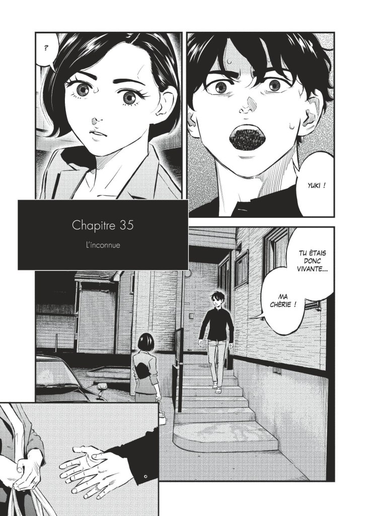 Toshiya Higashimoto a choisi de ne pas prendre en compte que chacun de nous à une destinée. Cette idée loufoque que tout le monde à un chemin écrit à l’avance signifiant que nous n’avons aucun libre arbitre. Même en prenant un trou de verre, une personne pourrait retourner dans le passé et cela n’aurait aucun impact ni sur le présent ni le futur. On remercie les astrophysiciens de nous expliquer des théories possible sur le papier. Le mangaka place son personnage principal dans le passé où un évènement à ruiner l’équilibre de sa famille. Et quand il revient dans son présent, tout sera différent. Shin va sauver des vies et à son retour dans son époque son épouse décédée est vivante et ne le connaît pas. Pire, elle est journaliste et enquête sur lui. Sa soeur a changé d’identité et de physique. Donc pour savoir pourquoi son père est tout de même en prison et accusé de ces meurtres, il va le voir. Quel plaisir de retrouver cet homme rencontré alors qu’il était jeune et tellement amoureux de son travail pour rendre justice. Il est resté simple et attachant malgré qu’il soit en prison et accusé d’une chose terrible. Pourquoi a t’il fini en prison? Qui est derrière ces meurtres? Qui lui envoie ces dessins horrible? On n’en saura pas beaucoup plus pour l’instant. Tout semble en lien avec Shin et ces choix dans le passé. Quelles opportunités vont se présenter à lui pour changer à nouveau l’avenir? Un mystère apparaît tout de même dans ce tome. Pourquoi sa grande soeur est-elle si étrange? Que cache t’elle? Pourquoi n’a t’elle rien dit sur son frère à son compagnon en fauteuil roulant? Pourquoi hésite t’elle à l’épouser? Quel rapport de force existe t’il dans ce couple étrange? Quel lien avec Shin surtout y a t’il? Un gros flot d’interrogations nous est proposé pour mieux nous pousser à poursuivre notre lecture. Allons-nous découvrir qui est derrière ces morts? La réponse dans 5 tomes.