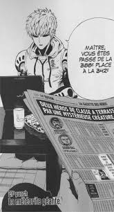 Après être remonté dans le classement des héros, Saitama se sent soulagé. Mais pas le temps de souffler pour les héros, car une météorite géante menace la Terre ! Genos essaie de la détruire, mais il n’y parvient pas et se retrouve à bout de force. Ne reste-t-il plus que Saitama et son poing dévastateur pour sauver la planète ?!