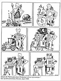 Dès qu’un enfant né, il part avec un potentiel de réussite. Bien entendu, ce dernier est différent si l’on vient au monde dans une famille d’ouvrier ou de patrons. Est-il obligé de reproduire le chemin de son paternel? La logique dirait que non par contre les analyses sociologiques disent que oui. Un système inégalitaire et discriminatoire qui est une vraie mine d’inspiration pour les esprits critiques. Plantu fait parti de ces artistes qui aiment appuyer avec humour là où le bât blesse. On retrouve les grands patrons venant des grandes écoles qui aiment gagner toujours plus d’argent au détriment des salariés. Ils sont encore représentés comme des hommes petits, gros, avec une paire de lunette et en costume. Est-ce que cette image de 1988 a vieilli? Etrangement pas vraiment. Est-ce le signe que la société n’évolue pas? Je laisse chacun y répondre. L’autre chose étonnante repose sur la vision de l’éducation nationale assez peu reluisante. Avec les polémiques actuelles et le manque d’enseignants, on constate que le problème est continuellement présent. L’humoriste a juste souligner un questionnement déjà présent. Il semblerait que cela soit invariablement la même chose. On vient à se demander s’il y a des actions d’intelligence collective pour apporter des changements. Néanmoins, on peut être surpris de ne pas voir de femme. Certes depuis les années 90, il y a plus de femmes patronnes mais cela reste encore un épiphénomène. Toutefois, elles sont présentes auprès des enfants aussi bien dans les institutions que dans les habitats. A moins qu’il faille y voir que cela reste malgré tout une remontrance envers le système patriarcale. Dans 10 ans, il faudra relire cette succession de gags et constater si elles sont encore d’actualité ou totalement obsolète.