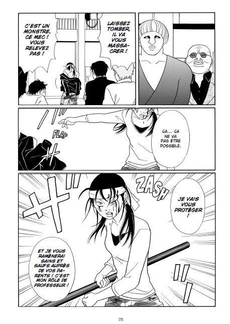 Kozueko Morimoto a fait monter la sauce progressivement tome après tome. Alors on avait des attentes très particulière pour cette fin. Surtout que la couverture était lourde de sous-entendu avec notre couple de héros en tenue habillée. C’est bon, nos amoureux allaient ouvrir leur coeur??? Comment cela allait-il se passer? Calme toi Jolly Jumper. Car il n’en sera rien. D’ailleurs, on a eu la puce à l’oreille très vite car cela commençait encore avec une aventure avec les élèves du lycée. Puis au milieu de l’album on en était encore à ça. Une petite pirouette et Shin décide de devenir avocat pour protéger le clan afin d’être proche de l’élu de son coeur. Kumiko est surprise et repousse l’adolescent. Voilà, c’est fini. Vous avez attendu 15 tomes pour vous contentez de voir une prof être acceptée par ces élèves, ces collègues et les parents d’élèves. Les yakuzas peuvent être des gens sympas au final. Une pointe de déception s’affiche. On nous met en file rouge une histoire d’amour qui tombe à l’eau. Je crois que je vais me plonger dans GTO pour rester dans l’esprit yakuza et prof redresseur de tort.