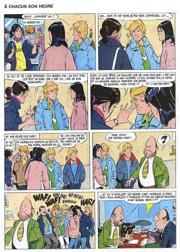 La vie des lycéennes Julie, Claire et Cécile ne manquent pas de rebondissements. Elles s’amusent de leurs professeurs, se font de nouvelles copines et bien entendu, tombent amoureuses. Les garçons n’arrêtent pas de se succéder. La plupart ont des prénoms composés comme si cela leur donnaient une meilleure valeur sociale. On reste toujours dans un monde de blanc. La diversité n’existe que dans la couleur des chemises et des cheveux. Les rencontres amoureuses restent chastes. On se limite à des embrassades dans l’espace public. Est-ce parce qu’elles sont mineurs? De prime abord, on ne dirait pas. Leur apparence s’approche de jeunes femmes prêtes à se lancer dans le monde du travail et non d’élèves de classe de terminal. Sidney poursuit dans les clichés assez réducteurs. Ces demoiselles restent frivoles, superficielles, narcissiques, égoïstes… Elles sont limites tête à claques et énervantes. Heureusement qu’il y a des les mamies qui apportent un peu d’humour. L’album date de 1988 et cela se ressent très bien. Des hommes qui parlent d’adolescentes dans un monde dominée par la pensée machiste, pouvait-il en être autrement?