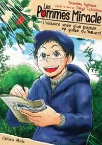 Tsutomu Fujikawa a adapté en manga le livre de Takuji Ishikawa. Une démarche audacieuse qui mérite totalement sa traduction en français et sa publication chez Akata. Penser le changement n’est pas donné à tout le monde. Quoi de plus normal de mettre en avant ceux qui ont osé bouleversé les règles établies pour faire autrement? Akinori Kimura a toujours été curieux de tout et aime comprendre. Une volonté qui a toujours dérangé son grand-père. Pas besoin de connaissance pour reprendre son domaine agricole. Il faut reproduire ce qu’il fait et suivre les recommandations des industriels qui vendent des pesticides. Avec tous les produits déposés sur les cultures, la production sera au rendez-vous. Le jeune garçon pensait pouvoir réaliser son rêve professionnel mais son frère ainé a décidé de choisir une autre voie que celle familiale. Le voilà contraint de revenir. Et puis, on lui présente une femme à épouser ce qui ne lui laissera plus jamais l’occasion de partir. Il prend le nom de son épouse et va s’occuper des champs du beau-père. Quand il découvre que son épouse est allergique aux pesticides cela l’a incité à trouver une alternative. « Tout le monde martèle que c’est impossible de produire des pommes sans produits phytosanitaires mais est-ce que quelqu’un a déjà vraiment essayé? Bien sûr, tout le monde pense que c’est impossible alors personne ne le fait ». Lui n’est pas comme les autres. Par conséquent, il va lire pour comprendre et faire des tests. Sur le principe d’essai/erreur il trouvera la solution. Il lui a fallu plusieurs années pour savoir que l’essence du dénouement. Grâce au soutien de sa famille et de ses amis, il a pu se tromper même si cela mettait sa femme et ses enfants dans une grande précarité. Et après, il a du convaincre qu’une pomme bio était meilleure que les autres. Là encore, il a fallu du temps pour faire des adeptes. Il n’a pas choisi de faire fortune discrètement pour rafler un marché. Sa démarche va jusqu’à transmettre son expérience à tous ceux qui serait intéressé. En août 1949, c’était une pensée totalement nouvelle et innovante. D’autres personnes y ont réfléchi sans pour autant le mettre en application sur les pommes et d’autres légumes de consommation quotidienne. La ville d’Iwaki, dans la préfecture d’Aomori, au nord de l’île Honshu était un terrain propice à l’expérimentation. Il tente avec ce qu’il trouve dans la cuisine, en retirant les insectes à la main, en parlant aux arbres… Le mangaka rend hommage à cette homme qui a du faire face à l’incompréhension des autres qui se moquaient de son idéal. Si l’argent rendre pourquoi se préoccuper d’autres choses? La pomme est très parlante car cela reste le fruits le plus traités qui est consommé. Ce n’est pas pour rien qu’il est conseillé de l’éplucher avant de la manger. On suit toutes les démarches sans omettre la continuité des échecs. On apprend de ces dernières et le hasard nous met parfois sur la bonne piste. La nature a des réponses à proposer aux maladies qui l’attaque. L’homme n’est pas vraiment utile. A part si le rendement est plus important que la qualité.