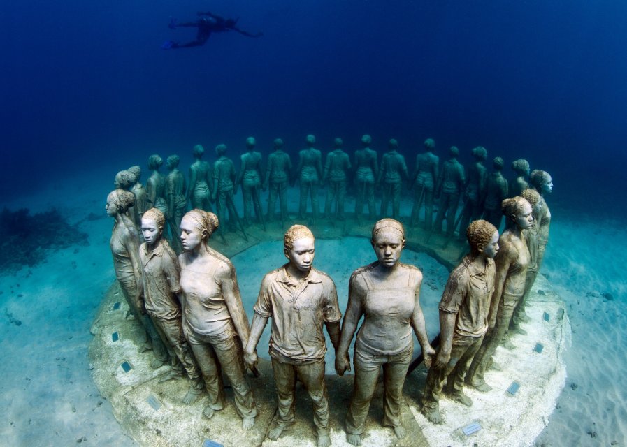 Jason deCaires Taylor et Jérémy Gobé forment un duo créatif avec une démarche des plus profitables à la nature. Le premier réalise des sculptures souvent humaines et l’autre a développé un système qui permet au corail de se fixer sur les oeuvres d’art. Les oeuvres touchent le public à travers les sujets abordés. Le résultat est vraiment magnifique et utile.