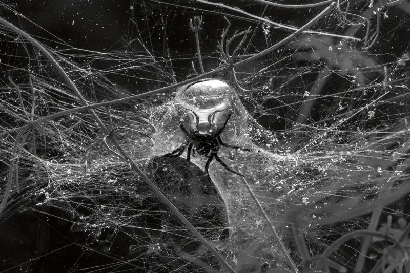 Tomàs Saraceno trouve son inspiration dans les araignées. Pour collaborer avec eux, ils les placent dans des espaces assez grand et expose leur travail de toile.