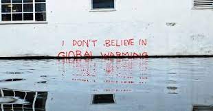 Le street artiste Banksy lui aussi essai de sensibiliser les citoyens aux catastrophes naturelles. Ainsi en 2009, il tague un message sur une façade d’un immeuble sur les rives du Regent Canal à Londres. On pouvait y lire « I don’t believe in global warming » (« Je ne crois pas au changement climatique »). Mais l’eau en montant couvre le texte. En 2010, sur les ruines d’une usine à Détroit aux Etats-Unis, « I remember when all this was threes » (« Je me souviens de quand tout cela n’était que des arbres »).