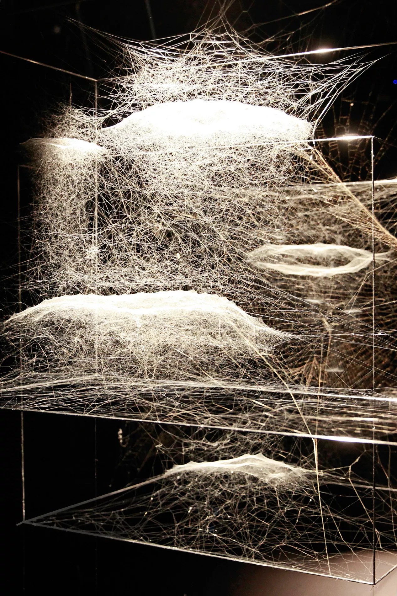 Tomàs Saraceno trouve son inspiration dans les araignées. Pour collaborer avec eux, ils les placent dans des espaces assez grand et expose leur travail de toile.