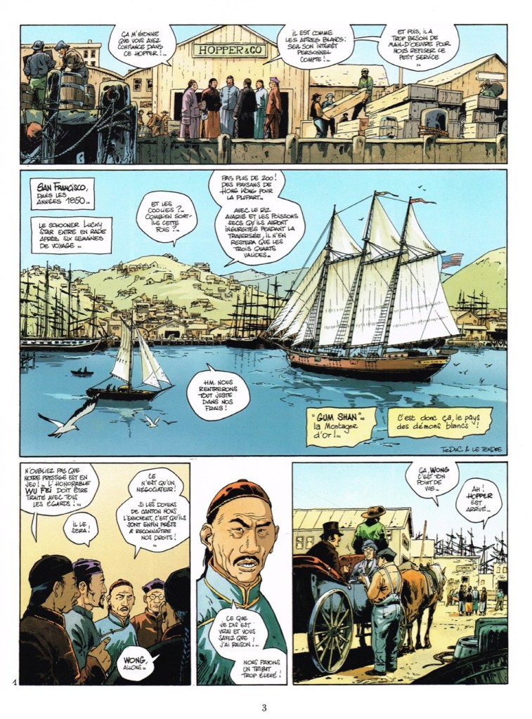 Bien que la bande dessinée date de 1997, il n’est jamais trop tard pour découvrir les petites pépites. Et n’oublions pas qu’il y a un temps, les Humanoïdes Associées proposaient des séries très qualitatives. On se souvient de la « Caste des Métabarons » ou « L’incal ». « Chinaman » est une aventure singulière très prometteuse. Déjà pour son choix de récit en mettant comme personnage principal un héros chinois. Les personnages asiatiques restent très peu présents dans le 9e art. On pense soit à ceux dans Lucky Luke ou soit à Yoko Tsuno. On tombe sous le charme de Chen, un jeune garçon pris sous l’aile d’un riche notable chinois. L’honneur et la justice avaient un sens pour lui. Et quand il apprend qu’il a toujours été manipulé par celui qu’il admirait et qu’il a en plus fait tuer son amoureuse, c’est le déclic. Plus jamais, il ne sera esclave de personne. Il coupe sa natte et part sur les routes américaines. Serge Le Tendre pose le cadre d’un récit qui s’annonce prometteur et mouvementé. Et surtout il a créé un ennemi à la hauteur avec le meilleur ami de Chen. Olivier TaDuc propose un univers graphique très standard et en accord avec le genre. Un western avec son lot de repères avec des chercheurs d’or, des coolies, des manipulations politiques.. Un premier tome qui donne envie de poursuivre pour mieux vivre l’essor des Etats-Unis.