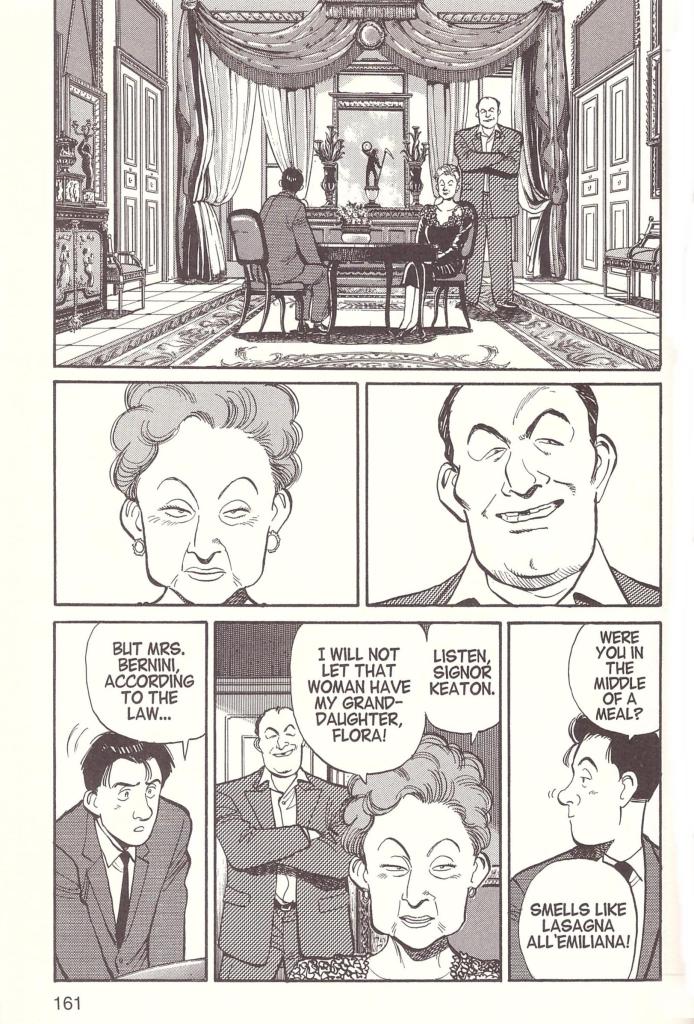 La lecture du premier tome s’était terminé de façon un peu septique. Le fait d’enchainer une suite d’histoires sans lien entre elles a quelque chose d’assez ennuyant. On retrouvait juste la fille comme une sorte de fil rouge ainsi que le lien avec son ex-femme. Là le fil est encore plus ténu. Chaque aventure n’a pas le même intensité ni même nombre de pages. On va aussi bien enquêter sur des meurtres par contamination de la rage qu’une quête pour trouver la bague offerte d’un mari à son épouse volage. Sa passion pour l’archéologie est signalé mais n’apporte absolument rien aux rebondissements. Il voudrait continuer à instruire et gagner de l’argent pour faire des fouilles dans une zone où il n’y en a pas. Ce point personnel du personnage est un peu plus approfondie avec des références à ses enseignants lorsqu’il était jeune. Pourtant c’est tellement bref que l’on ne s’attache pas plus que ça à Keaton. Malgré que le gars soit un ancien SAS, passionné d’archéo, enquêteur pour des assureurs et père tout cela nous avait été donné dans le précédent tome. Tout comme le fait qu’il soit très gentil et qu’il souhaite protéger la veuve et l’orphelin. Le syndrome du sauver n’est pas très loin. Pour l’instant, l’envie de poursuivre n’est pas au rendez-vous. On va d’abord finir les autres séries plus palpitantes pour revenir à ça et explorer le reste des créations de Naoki Urasawa.