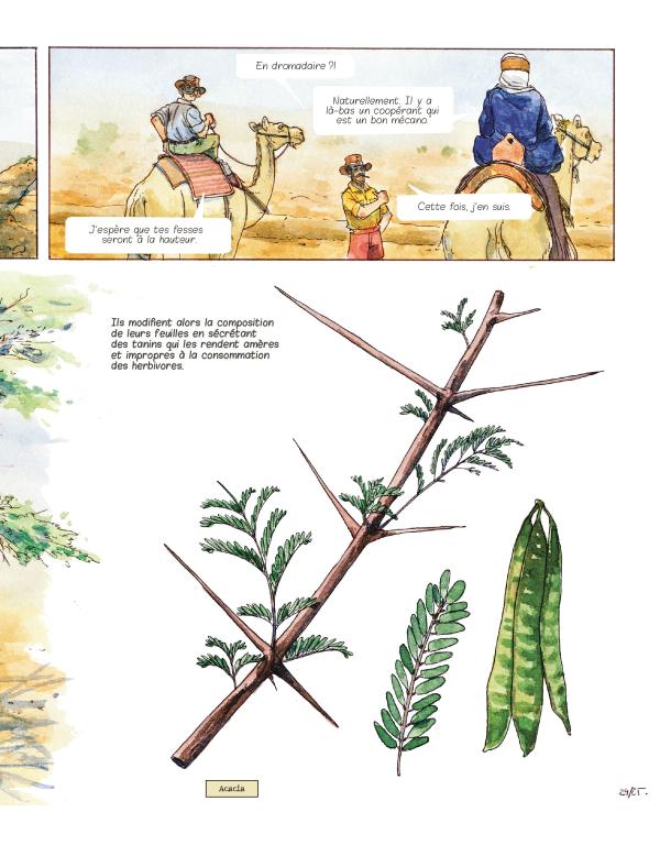 On oublie souvent l’incroyable richesse d’une plante. Sous ces quelques feuilles vertes se cachent des trésors avec des vertus souvent insoupçonnées. Partout sur la planète, des territoires regorgent d’herbes médicinales et de guérisseurs ainsi que guérisseuses. La plupart de leurs vertus sont connues depuis l’Antiquité comme l’aïl des ours, du cerfeuil, de l’aubépine… Le savoir empirique se diffuse et concerne tous les domaines. Faire débuter le récit au cloître des Récollet, datant du 14e, permet de souligner la vraie fonction du lieu avec les fonctions des plantes médicinales, reconnues même par Charlemagne. Une immersion totale réussi qui convainc aussi bien les adeptes de la phytothérapie qu’un néophyte. Aucun doute que la perception de ce qui nous entoure va changer même l’acceptation de l’appellation commune des végétaux et animaux. Stéphane Piatzszek n’omet pas d’aborder l’aspect industriel inhérent à la recherche. Toute exploitation d’une plante propre à une culture oblige l’organisme à reverser de l’argent à une population ou un pays. Est-ce vraiment respecté? Le scénariste n’aborde pas les questions faisant controverse. Le graphisme de Benoît Blary assez classique renforce cette proximité entre le sachant et l’ignorant. Les détails sur la nature rappellent les planches des botaniste. Une représentation qui souligne l’intemporalité du vivant non humain. Tout comme les représentations des périples en pleins désert par exemple faisant raisonner l’imaginaire de chacun avec des images vues au cinéma. On referme la bande dessinée très enrichie avec l’envie d’aller plus loin. Développer la curiosité des lecteurs, c’est un beau cadeau satisfaisant.