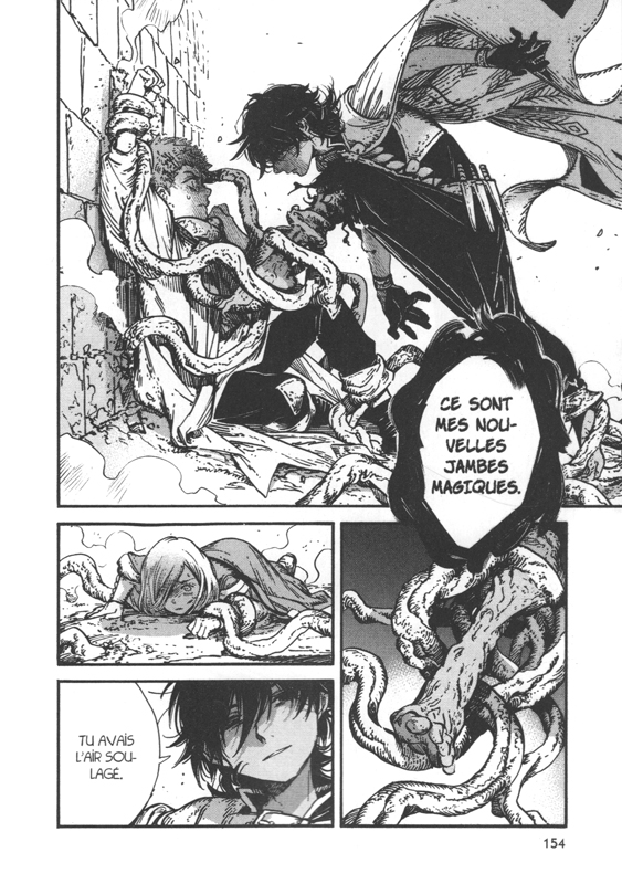 On passe enfin à l’action dans « L’Atelier des sorciers ». Kamone Shirahama a décidé de passer la seconde après avoir installé plusieurs champs de rebondissements probables. La grande fête de la magie où apprentis, magicien et habitants se mélangent dans un grand enthousiasme. Mais derrière cet aspect festif et joyeux se cache des choses plus inquiétantes. Les responsables de humains souhaiteraient que les magiciens s’impliquent dans les guerres afin d’arriver plus vite à leur conclusion. Le principe ne change pas comme une tradition inaliénable. Pourtant, cela laisse une part de négociation sur d’autres choses comme avoir des terrains, des avantages financiers… Il suffit de ne pas se faire prendre. Au pire, ils ont le droit à l’oubli. Bien entendu, on trouve ceux qui vendent des objets interdits au marché noir comme des lunettes pour voir les gens nus. La trame de suspens repose sur deux récits d’une grande inégalité dans l’intensité. Tout d’abord le retour de Kustas remarchant sur ces deux jambes. Ininia utilise la magie interdite sans scrupule. Elle va même emprisonner deux de nos héros préférés. Indéniablement, il va y avoir des conséquences assez sordides. La mangaka réintroduit la notion de qu’est-ce que la vérité et de la notion d’Histoire. Pourquoi des limites ont-elles été posés et surtout dans quel cadre? Pourquoi devoir mentir sur le fait que la magie repose juste sur des dessins donc c’est accessible à tous? Une réflexion sur des choix de sociétés qui impose forcément des discriminations et favorise les rapports de classe. C’est tout à fait cohérent avec une jeune fille dénonçant du harcèlement sexuel et que l’on veut faire passer pour la criminelle. C’est normal qu’un homme touche des mineurs et leur susurre des propos déplacés. Au final, le maître sera puni de couvrir de tels actes. Un peu de justice parfois cela inspire à croire à des lendemains meilleurs. Un tome très dense, complexe et riche sur tous les plans. Comment ne pas avoir envie de se plonger dans la suite? Impossible.