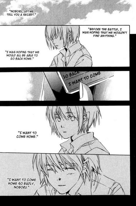Le choix de cette lecture s’est fait car c’était le coup de coeur des bibliothécaires. Donc, aucune importante de lire la quatrième de couverture. La surprise était totale. Nous voilà porté aux côtés d’adolescents au lycée qui vivent leur quotidien ordinaire. Du moins jusqu’à que Mikako soit envoyé dans le ciel pour poursuivre des extraterrestres. Elle aurait tellement mieux rester sur Terre aux côtés de Noboru. Elle fera de son mieux pour lui envoyer des messages. Toutefois, plus elle va loin et plus le message mettra de temps à arriver. La solitude lui pèse même s’il a des copines. Mais le garçon lui aussi se languit. Alors il va prendre les devants pour aller rejoindre sa belle qu’importe le nombre d’années nécessaire. On se laisse porter par ce lien fort qui se tisse avec tant de passion et de sincérité. Le rythme est très lent et permet de jouer les nuances entre les deux vies dans deux mondes différents. Makoto Shinkai insuffle beaucoup de poésie. On y voit aussi de la naïveté entre deux gamins devant faire face à la guerre et la mort.