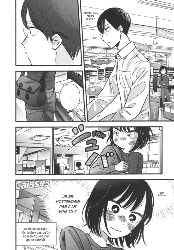 L’avis Les Blablas de Tachan : « Il n’y a donc rien de flamboyant ici, juste une douce et mignonne petite comédie romantique entre deux grands timides, mais c’est conté avec tellement de bienveillance que cela a un charme fou et fait oublier bien des maladresses, comme le dessin parfois un peu particulier de l’autrice qui affuble son héroïne d’yeux de plus en plus grands, j’ai l’impression >< C’est un charme désuet qui me plaît énormément. »