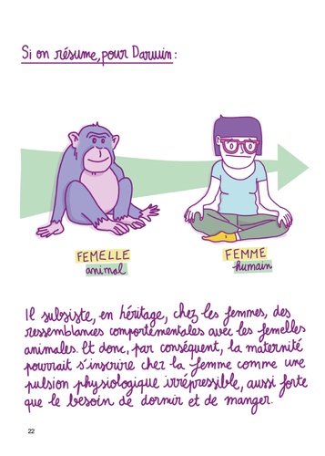Tout est dit dans le titre « Petit précis de déconstruction de l’instinct maternel ». Qui n’a jamais entendu parlé du fameux instinct maternel que toutes les femmes devraient avoir? Sans ça, comment leur faire croire que c’est leur boulot de s’occuper de la progéniture. Qui a entendu parlé de l’instinct paternel? Faut-il en conclure que les hommes ne peuvent pas s’occuper de leurs enfants ni de les aimer? Plus d’un père s’indignerait de cela. Pourtant, on ne parlerait pas d’instinct. Juste d’amour d’un parent envers sa descendance. Pourquoi autant stigmatiser les femmes avec ça et les faire complexer? Lili Sohn a décidé de s’approprier ce sujet et de faire une enquête historique ainsi que sociale. La bédéaste ne se revendique pas sociologue ou anthropologue. Elle cherche à comprendre et va trouver la donnée où elle est. Sans surprise, on découvre que c’est une construction sociale qui parfois s’est argumentée de science. Bien entendu, aucune étude sérieuse même de nos jours ne prouve cette théorie. Après des siècles de rumeurs, des individus ont arrivé à convaincre que c’était vraie et colporte cette ineptie, les femmes les premières.