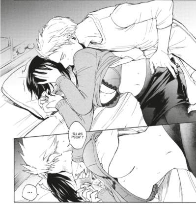Kôtarô Natori est un nez et il conçoit les odeurs des parfums de l’entreprise. Par conséquent, il a un rapport très particulier aux choses et aux individus. Les senteurs d’Asako varient selon ses émotions. Cela lui permet de lire en elle quand elle hésite à dévoiler son coeur. Grâce à ça, on voit un couple qui apprend à se connaître et se faire confiance. C’est normal de trouver des scènes aussi avec maladresse qui les rend plus vrais et plus touchants. On finit par s’attacher à notre duo. Nous ne sommes pas dans un shojo totalement niais mais par contre dans un seinen. C’est pour ça que tout arrive au premier tome et pas au vingtième. Ils s’embrassent et font même l’amour. On ne s’étonne pas de voir la femme avec un corps de rêve et une grosse poitrine. Le fantasme masculin est toujours satisfait. Tout comme la pudeur car les tétons sont effacés. La singularité repose aussi sur l’évocation de la transpiration. Seuls les parfums chimiques sont tolérés par la société et souvent de façon discrète. Les effluves personnels restent un marque social très important. L’interrogation de la posture par rapport aux autres va aussi être développée par la suite. Une lecture surprenante et déroutante qui nous pousse à prolonger l’aventure.