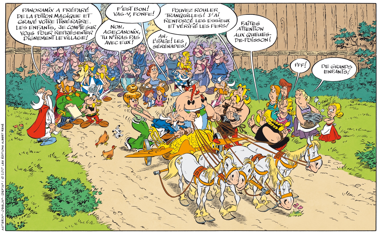 Après Astérix chez les Pictes (2013) et Le Papyrus de César (2015), les personnages créés par René Goscinny et Albert Uderzo reviennent pour de nouvelles aventures dans Astérix et la Transitalique, le nouvel album signé Jean-Yves Ferri et Didier Conrad.