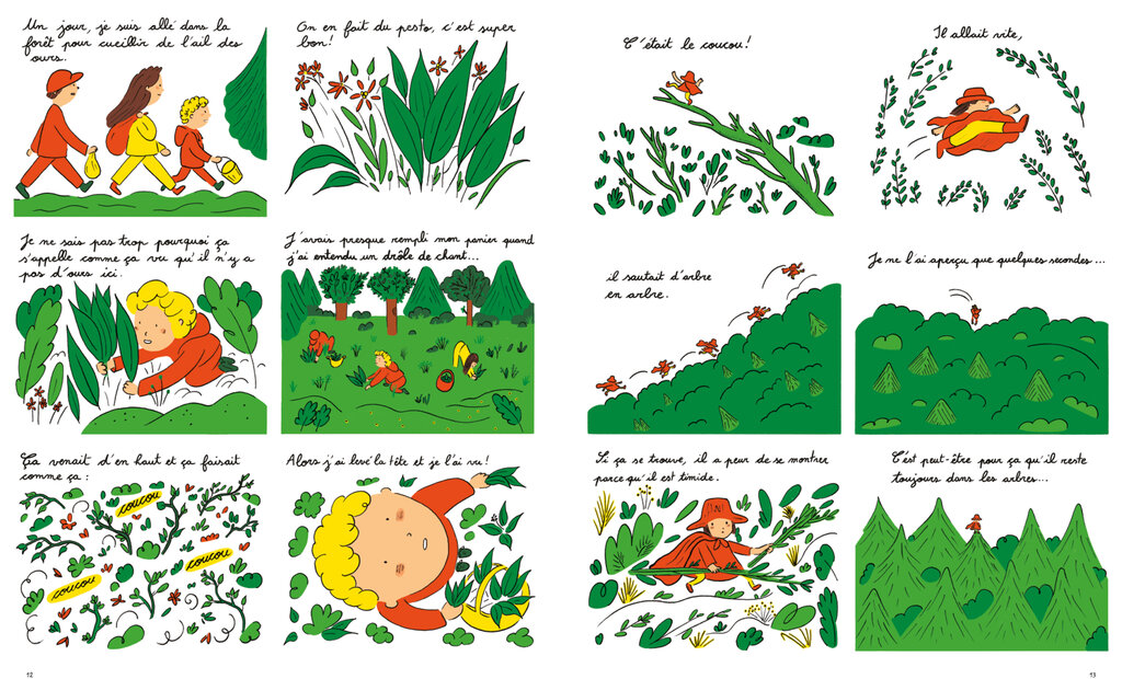 Au bois retranscrit 12 récits au fil des saisons, mélangeant bande dessinée et belles illustrations. De l’enfant qui raconte avec sincérité sa rencontre avec la minuscule « maison du coucou » à la femme âgée qui se souvient du goût du fromage fondu qu’elle apportait et partageait avec son père, ces récits de toutes les époques sont puissamment émouvants. Cette émotion nous révèle notre attachement ancestral et viscéral à la forêt.