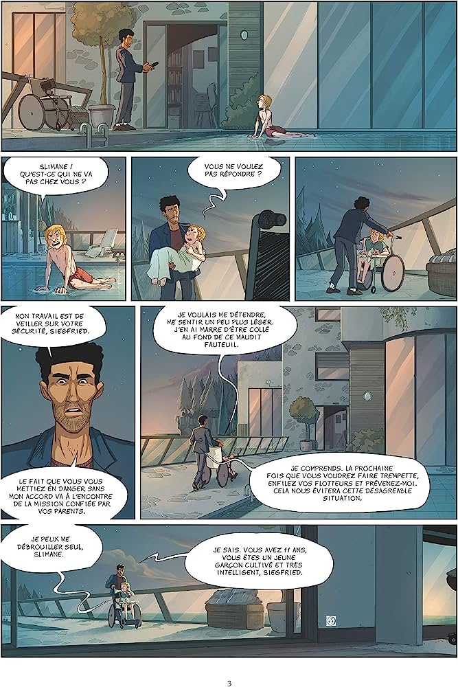 Fils unique de diplomates allemands, handicapé de naissance et contraint à l’usage d’un fauteuil roulant pour se déplacer, Siegfried possède un lien très fort avec l’eau. Ce garçon au caractère bien trempé passe le plus clair de son temps dans la piscine ultra sécurisée de sa maison quand il ne navigue pas dans les eaux plus sombres du darknet. Et si la rencontre avec son géant permettait à Siegfried de retrouver l’aisance de ses mouvements et de se libérer enfin de sa cage dorée ?