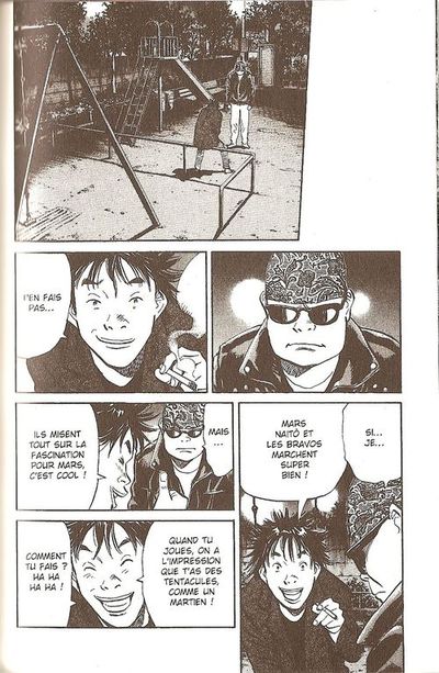 Pas le temps de souffler en tournant les pages. Nous sommes pris dans un tourment de plus en plus sombre. Heureusement que l’amitié sincère qui lie les individus du passé et du futur de Kenji est tenace. Grâce à ça, il ne restera pas seulement 1% d’habitant sur la planète. Le sujet de la maladie qui décime une grande partie de la planète est assez récurrent dans le monde de la SFFF. Bien souvent, l’argument avancé repose sur la sauvegarde de la planète. Plus les gens se reproduisent, plus ils l’étouffent. Souvent les élus survivent grâce à la chimie. Notre mangaka exploite le filon avec beaucoup plus d’ingéniosité. Il ne va pas à la facilité. Encore une fois, il parle de l’Allemagne, pays déjà présent dans la série « Monster ». Cette nation va être le lieu aussi d’une transition. Les cailloux sont assez petits pour deviner la suite. Donc une seule certitude possible, nous allons être très surpris.