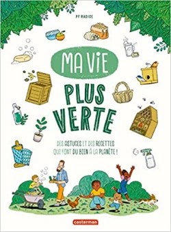 Au moins le titre : « Ma vie plus verte – Des astuces et des recettes qui font du bien à la planète » est très claire pour ce qui est proposé au lecteur. On ne va pas trouver une histoire linéaire qui va de A à Z avec des personnages. C’est un recueil d’astuces et de recettes pour la cuisine, la maison, le jardin et faire la fête. Un éventail assez grand pour qu’une famille puisse trouver son bonheur. PF Radice prouve que tout peut se réaliser avec sa tribu, dans la bonne humeur et en partage. Le bédéaste montre une famille multiculturelle. Qu’il est bon enfin de voir la diversité au sein d’une bande dessinée qui reflète vraiment la société. En revanche, est-ce que les enfants toujours heureux et ravis de participer à des tâches ménagères ou faire la cuisine n’est pas exagéré? Là pour le réalisme, on reviendra. Mais n’est-ce pas nécessaire pour insuffler du dynamisme et indiquer que tout le monde est concerné? Ces problématiques de réchauffement climatique, de pollution, de déchet… touchent tout le monde? Cette joie de vivre est très communicative au final. Il reste aussi au lecteur de choisir d’agir à sa mesure par rapport aux multiples propositions, assez accessibles en général, ce qu’il veut ou peut faire. On peut ramasser des déchets dans la nature, faire de la permaculture à petite échelle, fabriquer sa peinture ou cuisiner avec des restes. Par contre, certaines choses demandent d’avoir du matériel comme une machine à coudre ou une perceuse et aussi de savoir s’en servir. Donc la plupart du temps, la présence d’un adulte éclairé s’avère nécessaire. Le petit hic viendrait sur le manque d’explications sur les produits qui doivent être choisi. Privilégié du bois français ou issu d’un circuit court par exemple. Néanmoins, à la fin on trouve de nombreuses adresses et labels pour agir en cohérence avec la préservation de la nature et de la biodiversité. Une lecture assez intéressante qui se butine selon les envies.