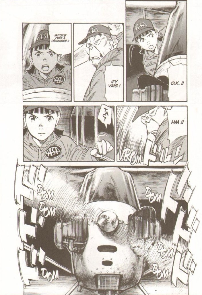 Notre impatience a été récompensée avec ce nouveau tome des aventure d’Asadora. La jeune fille est d’un courage impressionnant. Personne ne viendrait remettre en cause sa bravoure même pas les hauts gradés. Affronter la « chose » ne l’effraie guère même si elle risque sa vie. Et quand une mère vient lui faire la moral, elle n’hésite pas à lui répondre. Entre l’école, les cours d’aviation, sa mise en service auprès du gouvernement et s’occuper de ses petits frères et petites soeurs, en fait quelqu’un d’admirable ainsi qu’attachant. Comment cela pourrait en être autrement? On retrouve aussi Shota qui tente aussi d’atteindre son objectif. Faut-il vraiment prendre de la drogue pour ça? Il a des difficultés à affronter les hautes attentes de sa famille. La pression est assez prégnante. Mais c’est une belle opportunité pour Naoki Urasawa pour nous proposer des très esthétiques scènes de combats aériens. Kaiju versus avion et aussi kaiju versus Shota qui se pense super héros. Le monstre doit rester secret à tout prix. Pourtant un navire américain a été gravement touché. Faut-il craindre une attaque avec une bombe atomique? Les japonais ont un rapport particulier à la bombe et cela se comprend très bien. Il n’est jamais inutile de rappeler le risque d’une catastrophe. Surtout que le kaiju est une force de la nature devant laquelle l’homme est impuissant et représente souvent le nucléaire. On est totalement captif de la première à la dernière page. Doit-on faire face à ce monstre? Partira t’il par lui-même? Que de suspens. Dorénavant, on va devoir attendre patiemment la publication chez Kana.