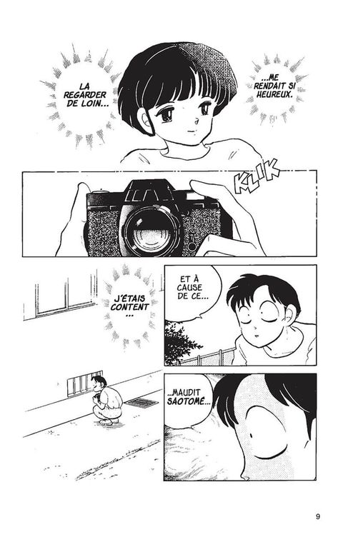 Nous sommes déjà au tome 5 et Rumiko Takahashi nous a montré la force de son imagination. Pas un seul moment elle n’a donné de moment de repos aux lecteurs. Le pauvre gars est inlassablement inquiété par son rapport à Akané. Comme elle est sa fiancée, cela amène beaucoup de jaloux qui veulent sa peau. A cela se rajoute, son physique change au contact de l’eau chaude et le transforme en jeune fille très séduisante à grosses poitrines. Shampoo est de retour et elle aussi se transforme dorénavant. Et elle devient le pire ennemi du jeune garçon. Kuno veut découvrir son point faible. Qui aurait pu croire que c’était juste des chats? On remercie son père des expérimentations qu’il a fait sur lui. Une séquence amusante qui va plaire à tout le monde. Les armes tranchantes ne lui font pas peur mais un miaulement le tétanise. Un running gag plaisant qui fait toujours son petit effet. Surtout que le degré d’absurdité va monter en niveau progressivement. Jusqu’à aller où Ranma se prend pour un chat ronronnant de plaisir. Tout est possible. Un nouveau personnage arrive avec l’amoureux de Shampoo. Bien qu’il a de gros problèmes de vue, il possède une grande maîtrise des arts martiaux. Va t’il pouvoir gagner un combat pour rafler le cœur d’Akané? Et l’avis des femmes là-dedans? Et le pire, pourquoi les enfants n’ont pas leur mot à dire. Pourquoi les adultes choisissent comme juste des légumes dans une recette? La mangaka a choisi comme angle que l’amour jaillira de la contrainte. D’ailleurs, cela ne se terminera pas par un mariage? C’est un peu tendancieux tout de même de croire que c’est normal de considérer les gens comme des objets. Les alliances pour rapprocher des familles, de l’argent, du pouvoir, de l’influence semblent d’un autre temps et cela existe encore. Fermons la parenthèse. Ici on mélange amour et duel dans une ambiance détendue et amusante. Un autre garçon fait son apparition, un gros pervers faisant des photos de la judoka. Pour les lecteurs masculins, le cœur de cible, rassurez vous, vous aurez votre lot de corps dénudé féminin et de gros seins.