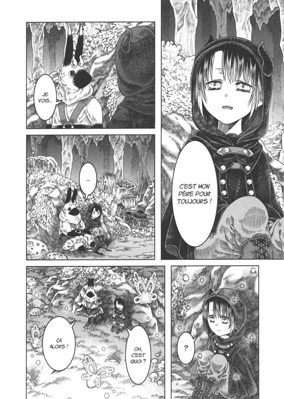 Yako Gureishi avait terminé le précédent tome avec une note d’inquiétude. Qui était ce loup assez louche qui suivait les enfants? En veut-il à l’adorable Somali? Absolument pas, c’est un surveillant du monde des créatures souterraines qui porte le nom de maître Muslika. Il sait que Kikila a tendance à ne jamais écouter les ordres qu’on lui donne. Le mangaka se régale à nous montrer un monde onirique incroyable et magique. A chaque peut émerger des choses improbables. On dirait que l’univers de Ghibli est passé par là comme source de l’imaginaire. C’est très riche en détail et on savoure ce périple en milieu inconnu. Surtout que le but de ce voyage est de trouver une fleur pour faire un souhait. La petite fille voudrait que son père de coeur, le golem, reste toute sa vie à ces côtés. Elle ne veut pas qu’il la laisse une fois qu’ils seront dans une communauté humaine. On verra par la suite si cela est possible car les jours pour le golem sont comptés.