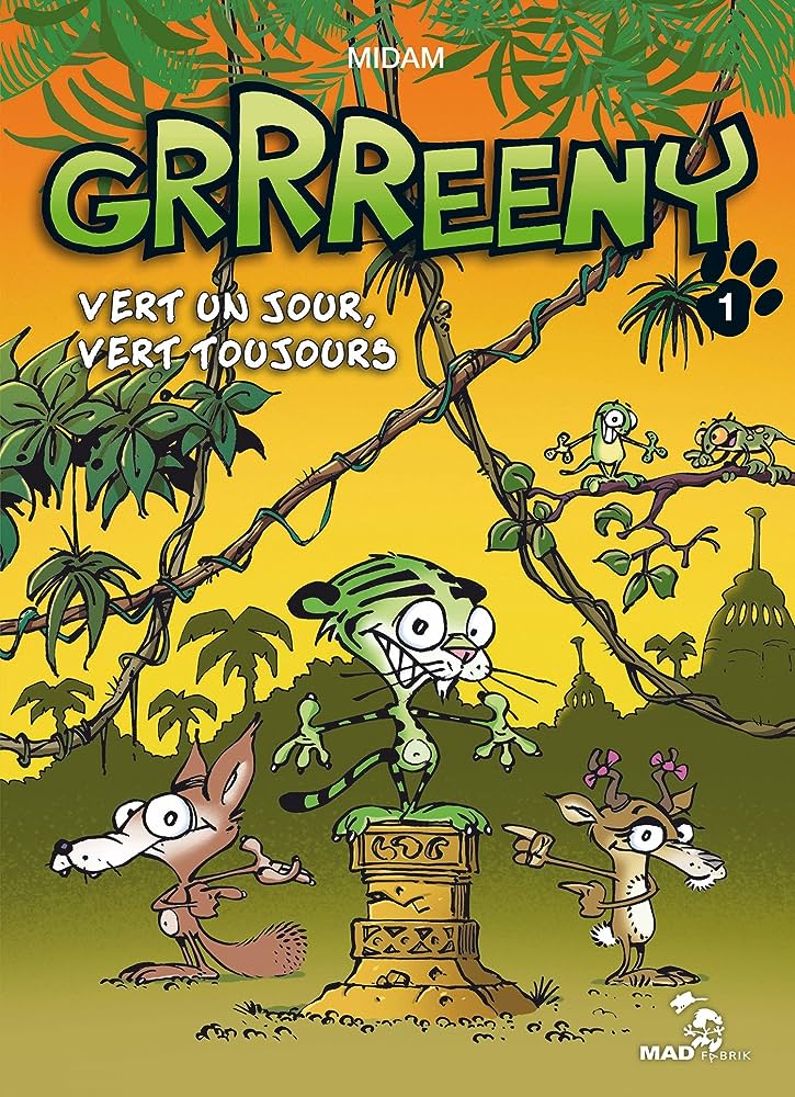 Grrreeny est né dans le livre pédagogique « sors tes griffes pour ta planète » où l’on découvre 5 grands sujets sur l’environnement et ses enjeux. Aujourd’hui, le petit tigre vert vit à travers sa première BD. Encore plus drôle, trash et vert malgré lui.
