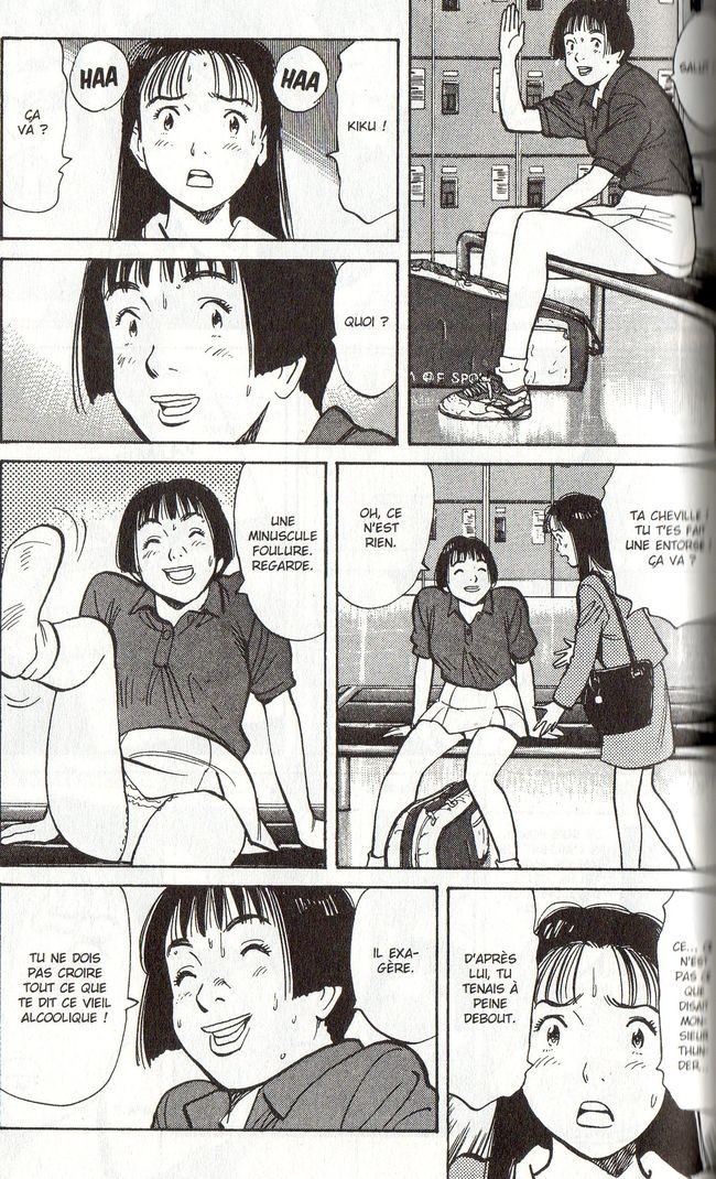 Malgré la gravité du sujet traité, on a le droit tout de même à quelques scènes de match de tennis. Des occasions pour le lecteur masculin de pouvoir se rincer l’oeil. N’oublions pas que l’uniforme du sport oblige un micro-short chez les femmes pour un short long chez ces messieurs. Les tee-shirts sont moulants chez les femmes et larges chez l’homme. Les tenues sont sexualisées pour le plaisir des hommes. Au 21e rien n’a rien changé et le tennis n’est pas le seul sport discriminant. Quelle belle occasion de dessiner des culottes, objets que les japonais adorent. La perversion va aller jusqu’à l’entraineur qui doit toucher le corps de son élève pour évaluer sa valeur. On assistera à une scène où des vieux libidineux regardent des joueuses dans les termes. Sa performance est évaluée selon la taille de sa poitrine ou la musculature de ses fesses. On peut le dire, gros dégueulasse. En plus, vous aurez le droit de voir des tétons. D’habitude, ils sont cachés car trop choquant. Un petit détail qui saura raviver la satisfaction de quelques-uns. Le tome se clôture sur le début d’un match qui s’annonce catastrophique. Bien entendu, on aura le droit à un rebondissement pas très surprenant. En gagnant, pourra t’elle payer son loyer? On le saura plus tard. L’ode à la méchanceté à aussi ces limites.