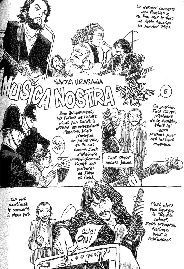 Un récit se démarque des autres. L’attaque organisée avec « Le royaume des Kaijû ». Ces animaux des fonds marins attaquent de façon régulière une zone en particulier. Quand ils perdent des écailles, cela donne l’émergence d’un marché parallèle. Des touristes viennent pour voir le lieu de leur passage avec l’espoir caché d’en croiser un. Ils oublient que derrière ces bêtes se cachent des innocents qui sont morts et ont perdu leur maison. Un français en voyage dans le coin en prend violement conscience et va se sacrifier. Une chose improbable et amusante se produit. Il fallait penser à ça. C’est même la bonne raison de lire ce recueil. Et également le fait que la dernière lecture se fait dans le sens occidentale. C’est déroutant de changer de sens en court de route. Le mangaka parle de ces amours comme la musique et le voyage sur la Lune. Au final, cela donne envie de finir les autres séries pas encore terminées.