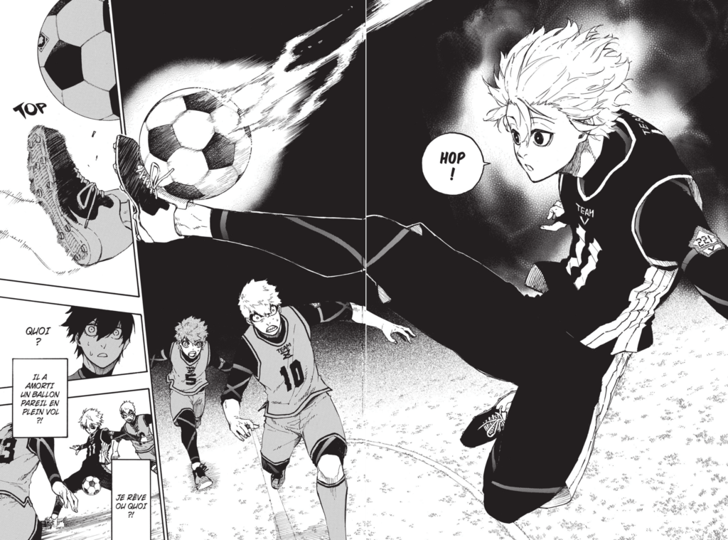 Bien que le manga parle principalement de football, le scénariste construit un récit avec son lot de rebondissements. Que les adeptes se rassurent, l’histoire est composée est à 95% de gars qui courent après un ballon. Ils doivent apprendre à travailler ensemble et analyser les forces ainsi que les faiblesses des autres. Il n’y a que comme ça qu’ils peuvent gagner ensemble et individuellement. Par chance, la brebis galeuse est vite identifiée. Pensez qu’à soi n’est pas forcément joué gagnant. Cette affirmation prendra vraiment forme au prochain tome. Entre temps, on découvre un peu plus d’autres joueurs. Bien entendu, on rencontre des narcissiques, des égoïstes, des détachés du monde… Pour mettre un peu de piment, il y a des chamailleries. La plupart bénéficieront d’un focus sur leur talent. Les lecteurs passionnés pourront s’amuser à savourer des passes ou choses dans le genre.