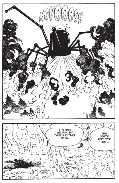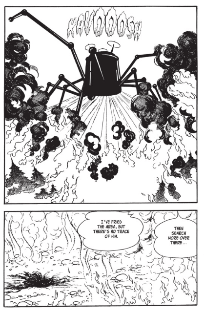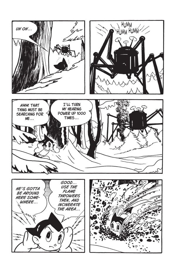 Osamu Tezuka est un maître du manga. Les européens ne connaissent pas forcément l’étendue de son travail. Une œuvre a marqué d’autres artistes qui lui ont succédé. Pour avoir une vision de son travail surtout celui sur Astro, on peut se plonger dans une anthologie sur le petit robot. Le tome 2 permet de nous faire découvrir un peu plus l’esprit du manga publié à partir de 1953. L’année permet de comprendre le style graphique très éloigné des productions modernes. Et l’autre point qui surprend est la présence de la violence présente tout le temps. Cela s’explique avec le ressenti post seconde guerre mondiale. Le peuple japonais a du changer radicalement de vie et faire face à l’utilisation de deux bombes atomiques sur le pays. L’espoir n’est pas trop de mise. La présence de l’atomique est toujours omniprésente. Il faut de l’uranium pour faire fonctionner les robots. La menace d’une nouvelle attaque meurtrière reste prégnante. Les méchants ne manquent pas avec des objectif de diriger le monde ou exterminer un ennemi. Dans « L’île en croix » qui marque le lieu où se trouve de l’uranium. Facile pour les méchants de trouver le lieu. « Cette île porte le nom de l’île en croix », son sous-sol à la forme d’une croix. Des centaines de milliers de robots travaillent ici à l’extraction d’uranium et d’or. » Cela pourrait de justifier le côté très binaire d’Astro qui l’amène à frapper violement des gens ou des robots. Lui aussi est un outil potentiellement dangereux. C’est écrit à l’intérieur de lui : « Une explosion atomique surviendra en cas d’altération du corps d’Astro ». Pourtant, il se fera démonter sans qu’il se passe quelque chose. Le mangaka a été traumatisé tout comme ses semblables. C’est totalement compréhensible. En sachant, on pose un autre regard sur les histoires proposées. On voit aussi les références de Naoki Urasawa par exemple.
