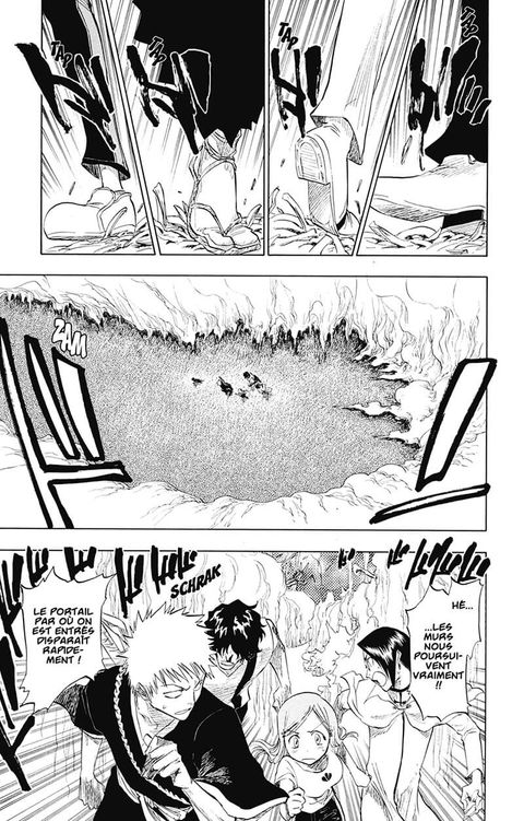 Le tome commence assez vite dans l’action. Il ne fallait pas s’arrêter d’avancer. On peut se demander si le chat Yoruichi savait qu’il y avait un camion de nettoyage hebdomadaire, pourquoi il n’a pas pris cela en compte? Même s’il ne connaissait pas la date de passage, pourquoi n’a t’il pas prévenu du risque possible? C’était la première occasion de voir comment le groupe fonctionne ensemble. De toute façon, il n’a pas le temps de s’ennuyer. Après il faut affronter celui qui garde la porte d’accès au premier niveau. Les choses se passent en devant mener des combats. L’occasion pour Ichigo Kurosaki de montrer ces compétences hors du commun. Par contre, il est de plus en plus impulsif et démarre au quart de tour. Normal puisqu’i est censé avoir 15 ans, malgré un physique d’adulte. Il se prend la tête avec un gars qui déteste les shinigamis. Il a une réplique percutante : « Espèce de tête de pissenlit ». Sans oublier les déformations de son visage lié vraiment au comique. N’oublions pas que c’est censé être à destination des adolescents masculins. Ce qui explique aussi que l’on a le droit à des plans sur des mégas grosses poitrines. Surtout avec Kûkaku l’artificière manchote. C’est important de cultiver la perversité chez les plus jeunes. Pour préparer à la suite, nous avons un bref aperçu de ce qui attend Rukia. La date de sa mise à mort a été avancée. Quelqu’un s’interroge sur les raisons d’un tel traitement pour une personne de si bas niveau. Le soul society est aussi soumis à la corruption, la gestion de privilège et la discrimination. Qu’est-ce que cela cache? Ses amis arriveront-ils à temps?