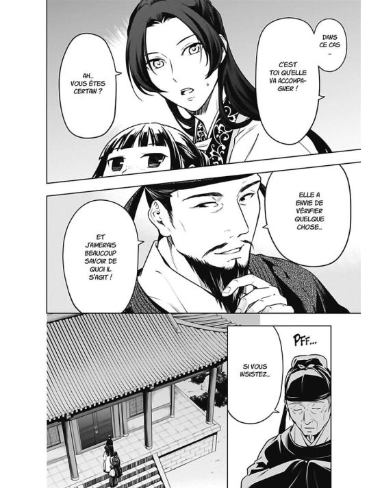 Cela devient de notoriété au sein du palais royal que Mao Mao possède un don d’analyse particulier. Quand la reine douanière lui demande de l’aide, impossible de refuser. Elle doit faire attention aux réponses apportées.