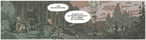 Seulement rien ne se passe comme prévue. La nature commence à se montrer agressive. Par chance, elle survit et voit des choses d’une grande violence. Pour l’instant, elle n’a pas encore conscience de ce qui l’attend. On voit un activiste qui défend la forêt à tout prix. Le comte Cocto lui a donné un engagement contre le retour de sa fille. Grâce à sa quête, on découvre la grande disparité des habitants qui s’adaptent à un milieu inhospitalier. Il n’est pas oublié le côté fantastique avec par exemple des licornes, des fées… Néanmoins, cela reste très éloigné de l’imaginaire mignonne. « Les légendes persistent, mon ami, mais, ces derniers temps, la forêt centrale n’a pas besoin de s’en nourrir pour paraître hostile… Elle l’est! » (p. 50). Le danger semble présent. « Les sols sont instables, la flore évolue vite et d’étrange manière… On voit des espèces toxiques éclore comme par enchantement. Il y a eu des disparitions de forestiers expérimentés, de détrousseurs aguerris… » (p. 51).