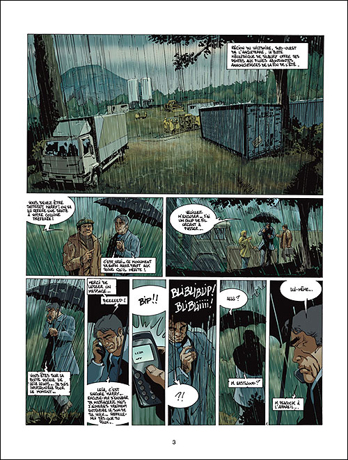 L’étude de la pollution se fait sur différents sites sur la planète. On retrouve la base antarctique Dumont-d’Urville, base scientifique française située sur l’île des Pétrels, en terre Adélie. C’est un véritable site de recherche réputé. Si on cherche à modifier les résultats de recherche pour éviter toute mise en garde, c’est tout un système qui est mis en branle. « Le premier de ces éléments est l’étude sur le réchauffement planétaire. Le phénomène ne fait malheureusement plus de doute, mais il reste encore à évaluer l’ampleur. Les enjeux écologique, écologique et politique sont énormes et les études menées sur les bases polaires pour préciser l’influence des gaz à effet de serre et le rôle du facteur humain sur le réchauffement sont primordiales ». Donc si on modifie les vraies données à la source cela ne peut qu’être positif pour ceux qui souhaitent en tirer profit financièrement. « Les analyses contradictoires suscitent des doutes et les doutes alimentent les arguments des sceptiques auprès des pouvoirs publics. Les décisions qui s’imposent tardent à être prises et sont sans cesse repoussées ». Le soft power est prêt à tout pour garder un monopole. « Rien de surprenant après tout. Le lobbying d’Eggo contre les mesures de restriction énergétique est bien connu… On estime qu’ils dépensent plus de quinze millions de dollars pour financer la désinformation climatique. Commandes auprès de scientifiques dissidents d’articles défendant la thèse d’un réchauffement naturel, soutiens aux parties politiques pré-pétroliers… » (p. 40). Un sujet très rarement abordé dans le 9e art surtout qu’encore une fois tout cela est véridique. Une fiction audacieuse qui a une volonté réelle de faire réfléchir le lecteur à l’état du monde à ce jour. Sachant que la bande dessinée date de 2019 et que le bilan n’est guère plus flatteur en 2023.