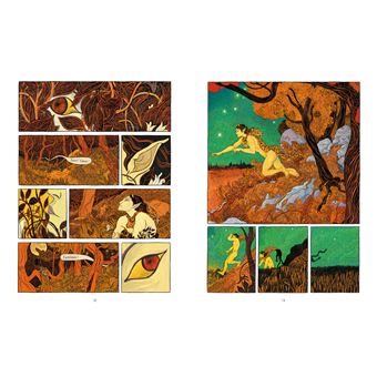 On ne peut qu’être émerveillé lorsqu’on regarde la couverture. D’ailleurs, on reste un moment à bien l’observer tellement elle est riche d’éléments. Et surtout d’une grande beauté dans la gestion des couleurs. Elle nous attire et elle nous captive. Cette sensation de ouaou ne nous quitte jamais jusqu’à la dernière page. On se dit même qu’il serait bien d’avoir l’ouvrage en grande taille pour une meilleure immersion. Toutefois, c’est totalement faux. La magie n’opère guère de façon similaire et on voit plus le trait numérique. Un bon choix de miser sur la version à 12.00€. On en prend plein les yeux et tout de suite. Il faut un petit moment pour se remettre de ce choc graphique. C’est tellement rare quand cela arrive que l’on est un peu retourné. Puis, on se plonge dans chaque page avec un sourire de satisfaction. C’est tellement un plaisir de se régaler. D’autant plus, que le scénario est éblouissant. Mélanger une forme de réalité avec la mythologie, cela demande une grande dextérité et une maîtrise du scénario. Là, on rencontre des personnages comme un faune, un satyre, une déesse…