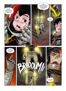 Le graphisme est net, précis et très lisible. Même approche pour la mise en couleur, qui joue avec le sombre et la lumière. On passe des zone assez marron et noir, l’ensemble assez nuancé pour inspirer le danger et le risque. Et de l’autre, on va avoir du rouge éclatant même si c’est souvent lié à la catastrophe. Sans omettre, la blancheur pour la lumière à la fois symbole de l’innovation et de la découverte. La pression, le doute et le deuil se ressente même si l’on ne lit pas les bulles. Le fait de garder les prénoms chinois est risqué pour un lecteur occidental qui n’est pas habitué à ces sonorités. Gentiment, le traducteur a rajouté des notes de bas de page pour comprendre les structures et les niveaux de hiérarchie. La forme très classique ce qui va ravir les fans de la SFFF. Un choix aussi valable pour la série « Les futurs de Liu Cixin ». N’oublions pas aussi que la question écologique reste toujours présente. On évoque les effets de la bombe nucléaire qui engendre la souffrance et la misère. Et aussi les dégâts environnementaux engendrer par la quête d’un supra-matériaux et de ces conséquences à long terme. Le monde n’est-il pas foutu? Il faut croire que non.